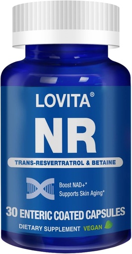 LOVITA NR (Nicotinamide Riboside) 350 mg, NAD Supplement with Trans-Resveratrol and Betaine, Promote NAD Plus Levels, Healthy Aging, 30 Vegan Enteric-Coated Capsules
