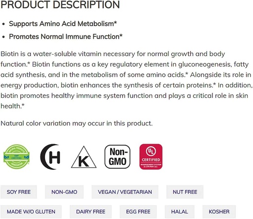 GNC Biotin 5000mcg Supplement, Supports Healthy Hair, Skin and Nails, 120 Servings