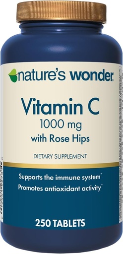 Nature's Wonder Vitamin C 1000 mg with Rose Hips Tablets for Immune Health, 250 Servings, 250 count
