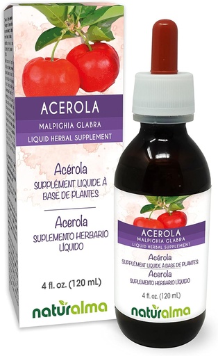 Naturalma Acerola (Malpighia glabra) Fruit Alcohol-Free Tincture - Rich in Vitamin C - 4 fl oz Liquid Extract in Drops - Herbal Supplement - Vegan