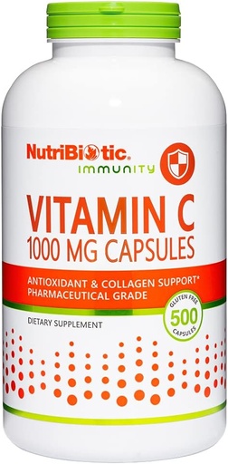 NutriBiotic - Vitamin C 1000 Mg Capsules, 500 Count | Essential Immune, Antioxidant & Collagen Support Supplement | Pharmaceutical Grade L-Ascorbic Acid, 1000 Mg Per Serving | Gluten & GMO Free