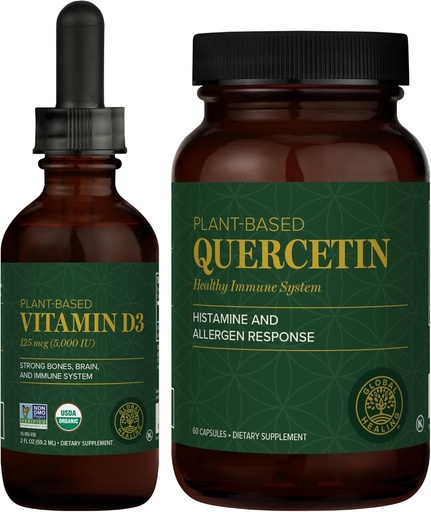 Global Healing Center - Vitamin D3 5000IU & Quercetin 250mg - Supports Bones and Immune System, Respiratory Health