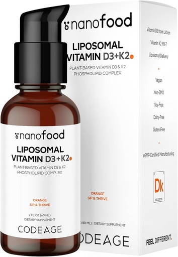 Codeage Liquid Vitamin D3 K2 Supplement, Liposomal Vitamin D Cholecalciferol, Menaquinone MK-7, Liquid Vitamin K - Vegan & Non-GMO - No Sugar - 2 fl oz