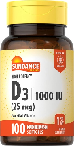 Sundance Vitamin D3 1000iu | 100 Softgels | High Potency Formula | Non-GMO and Gluten Free Supplement