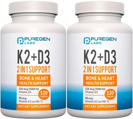 2 in 1 High Potency Formula 90mcg Vitamin K2 (MK7) and 5000 IU Vitamin D3 Supplement for Bone and Heart Health | Non-GMO Formula Vitamin D3 & K2 Complex, Total 240 Capsules I 8 Month Supply